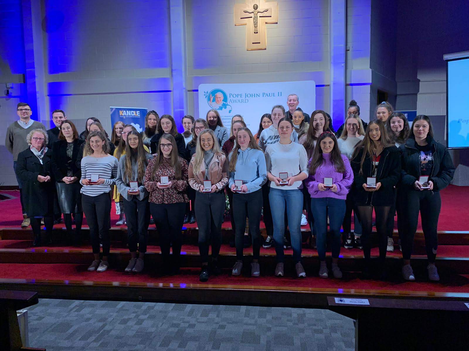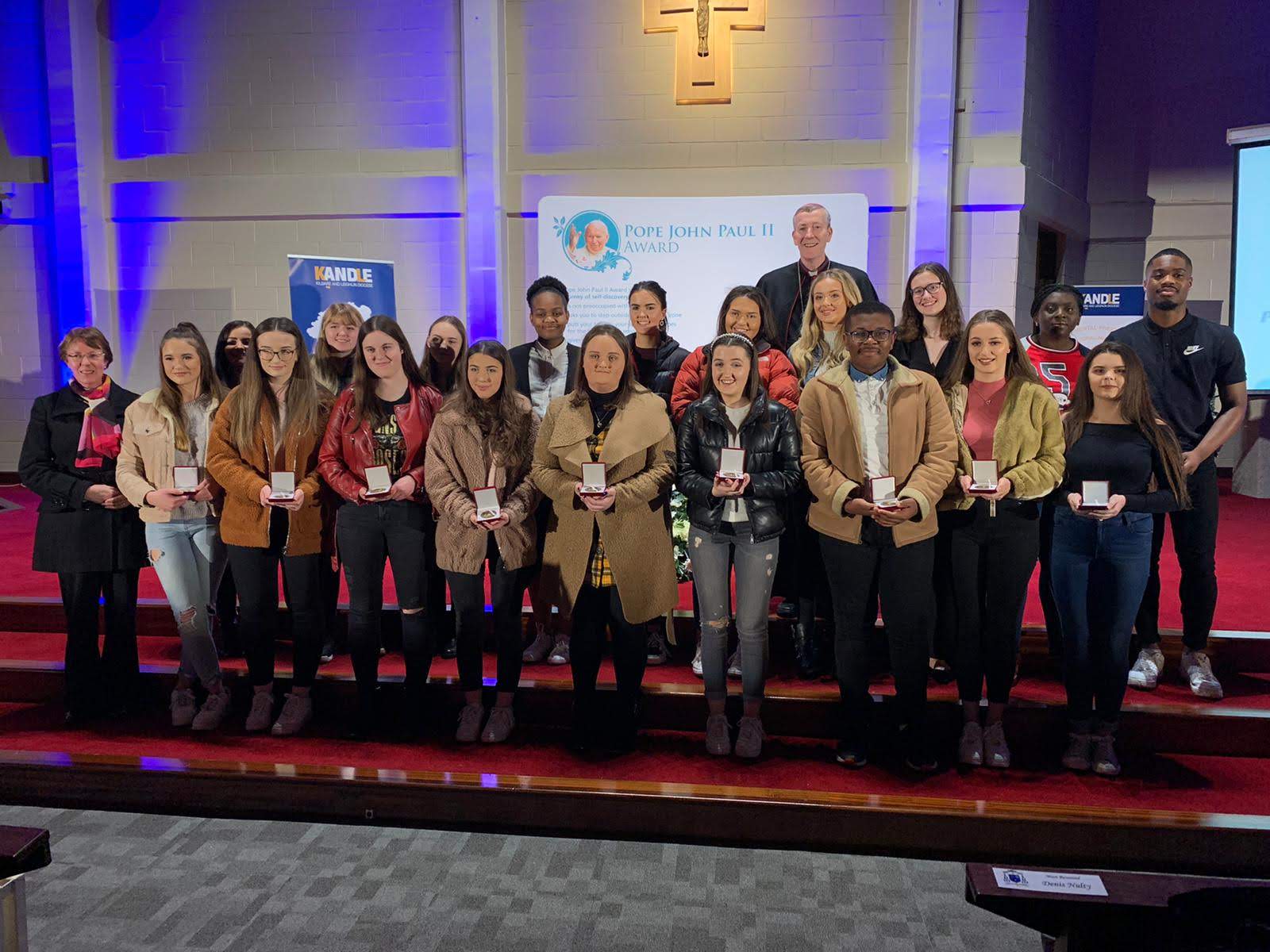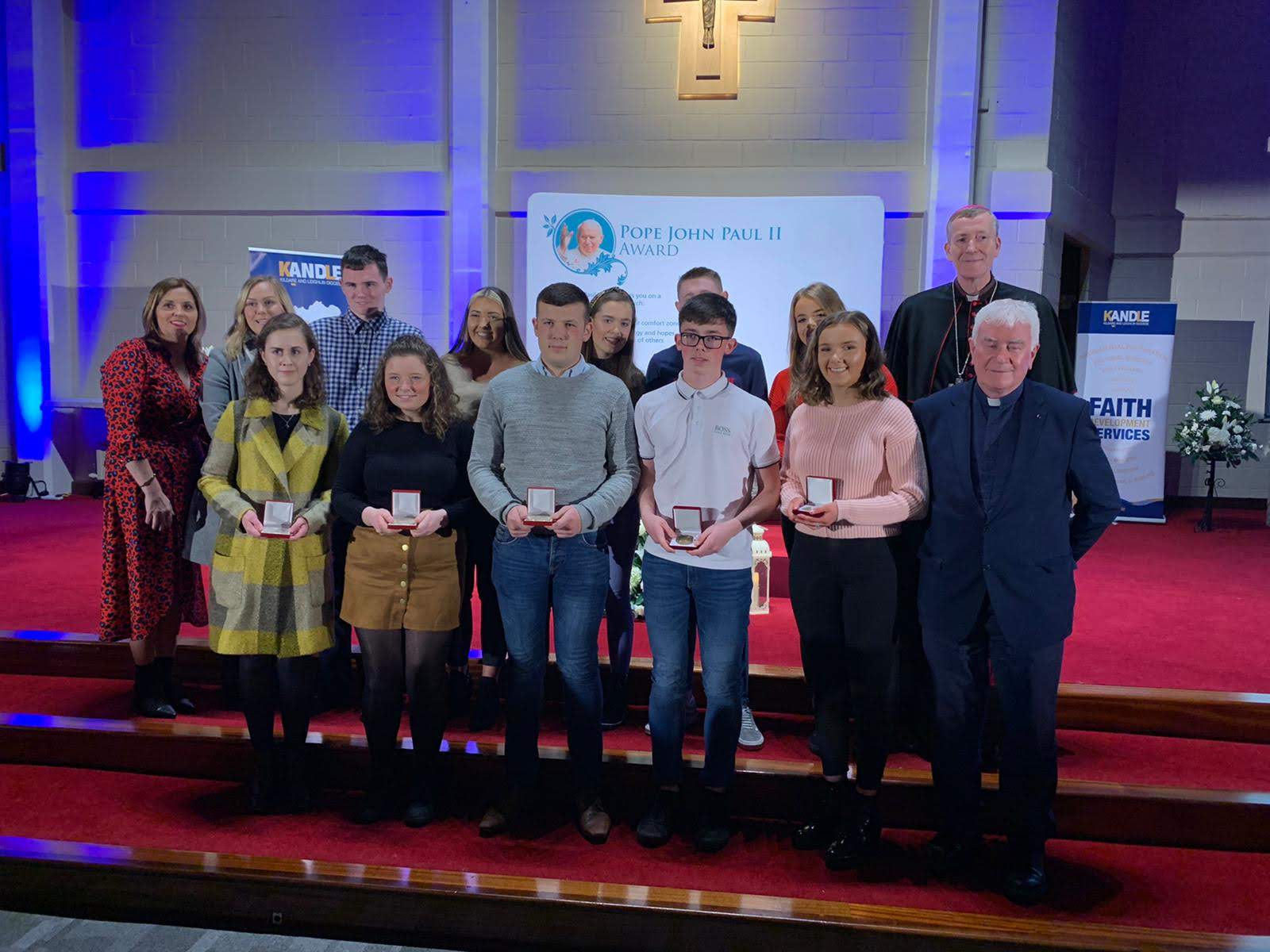 A staggering 372 young people from around the Diocese received their Pope John Paul II Awards recently at two ceremonies in the Cathedral of the Assumption, Carlow and Cill Mhuire Church, Newbridge.