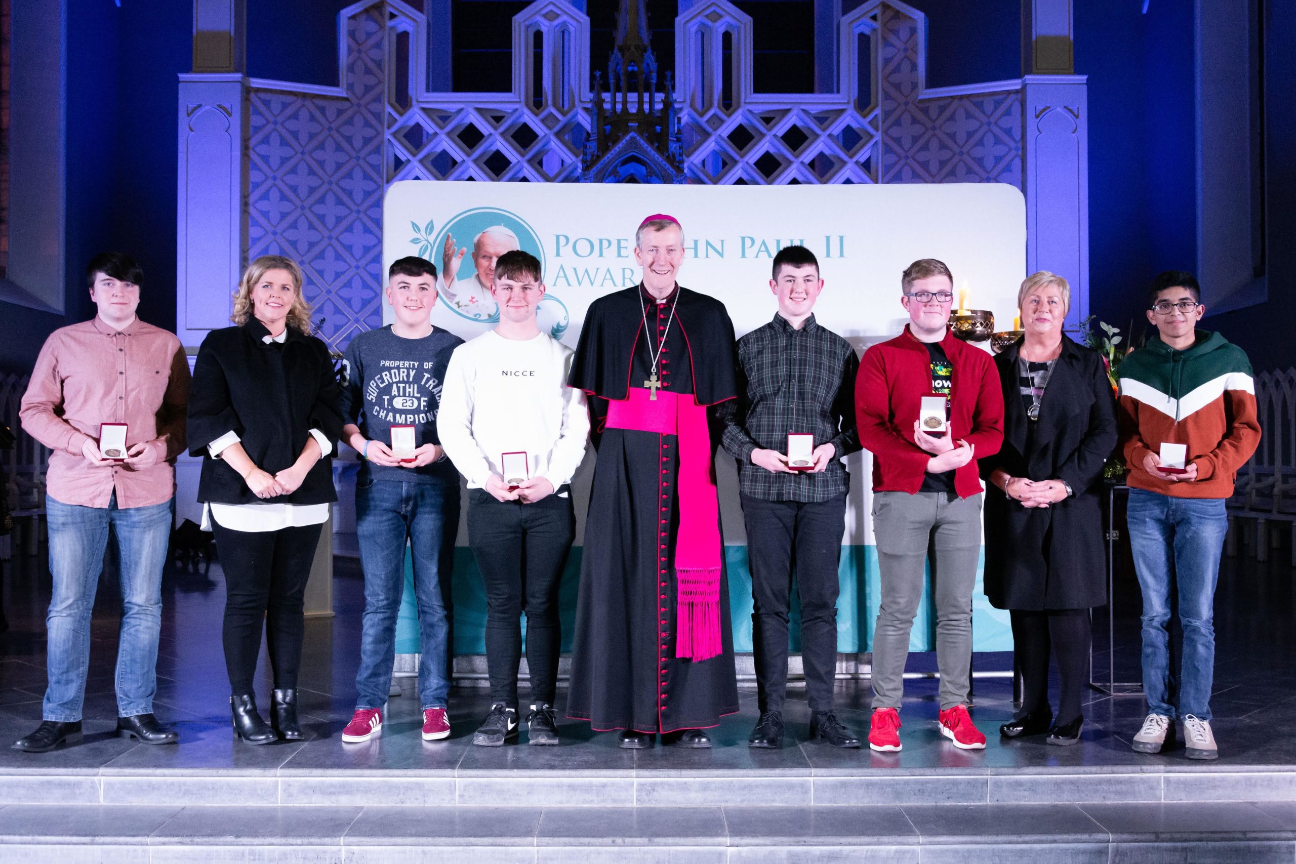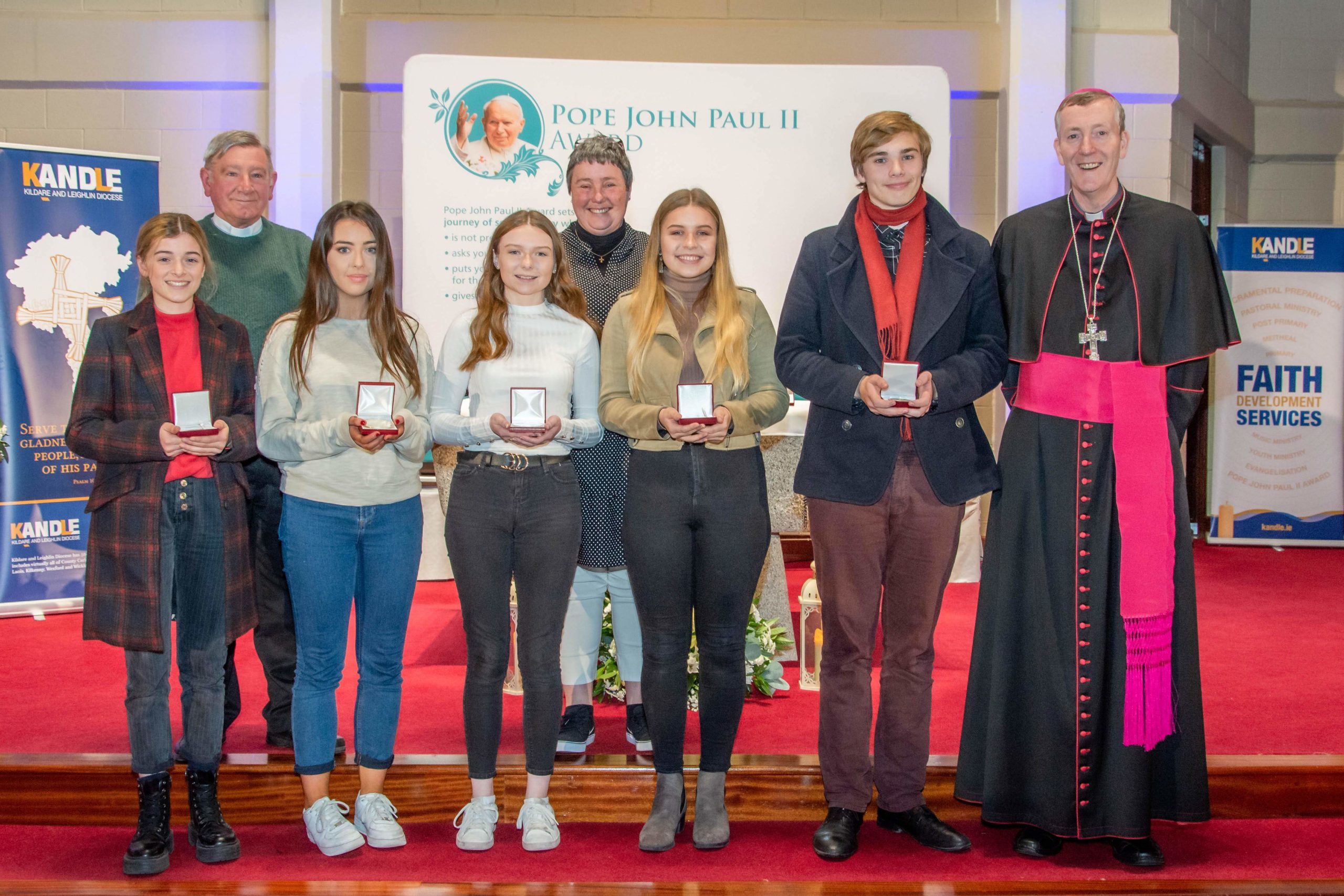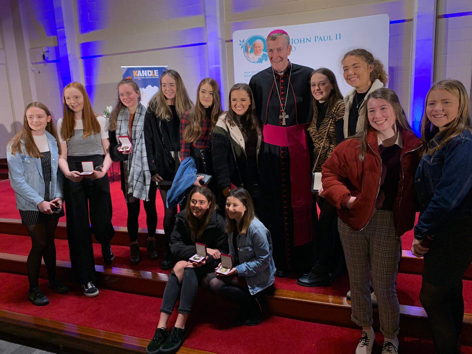 A staggering 372 young people from around the Diocese received their Pope John Paul II Awards recently at two ceremonies in the Cathedral of the Assumption, Carlow and Cill Mhuire Church, Newbridge.